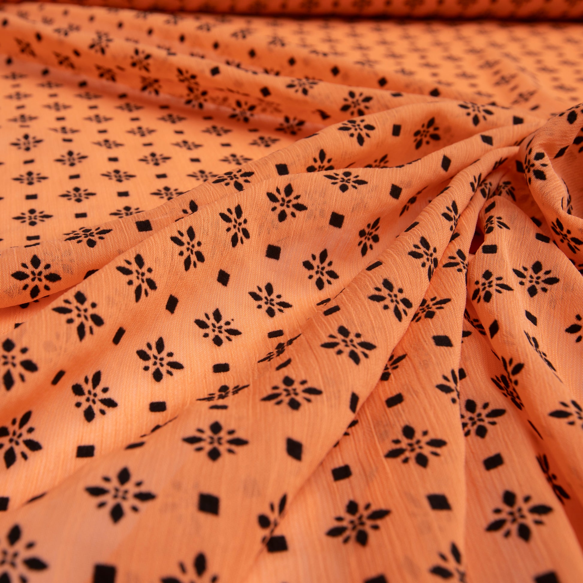 Chiffon Creponado Com Flocking Tangerina