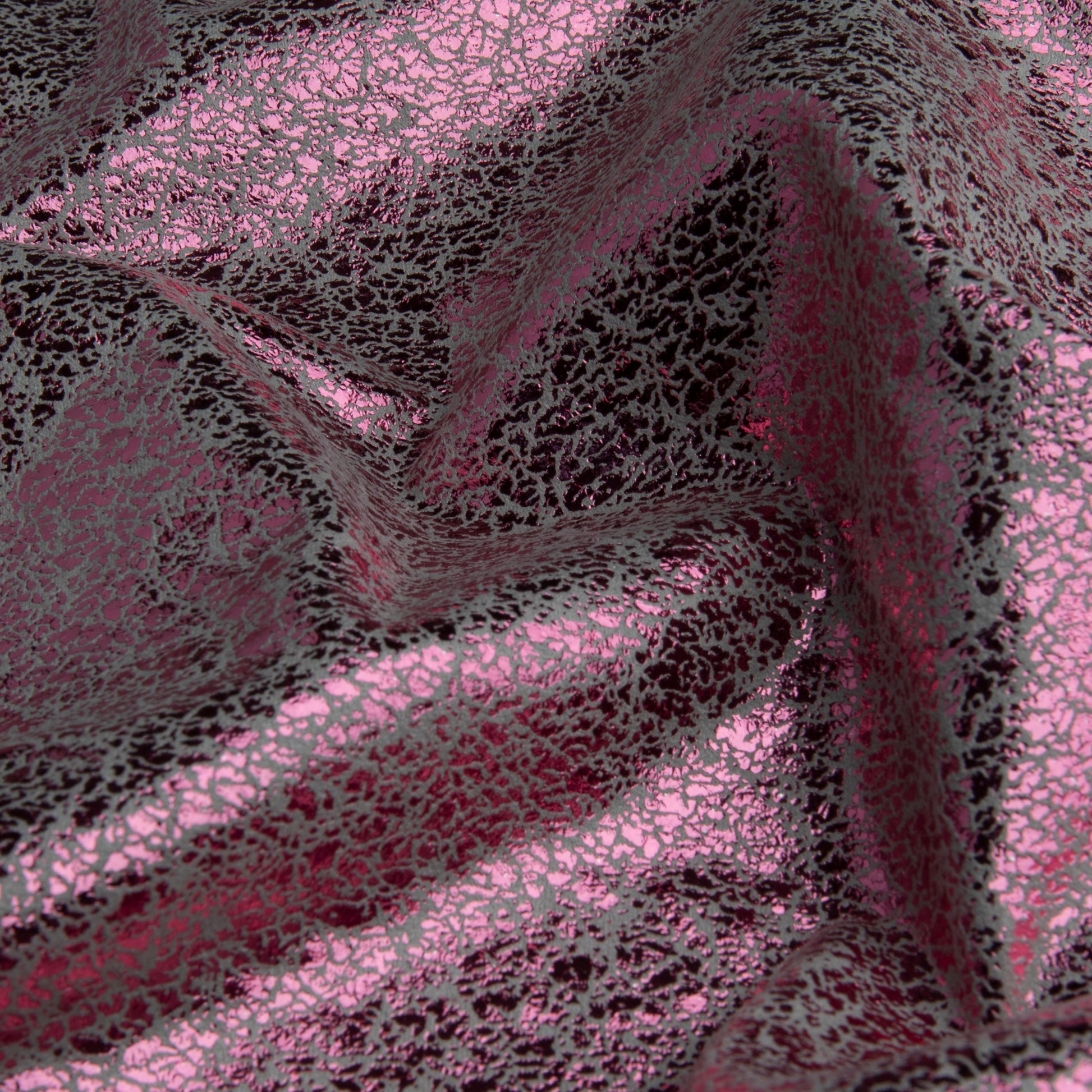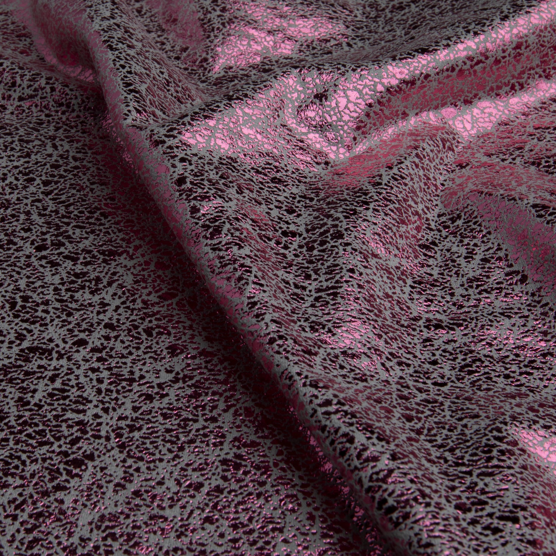 Tecido com brilho intenso e textura craquelada que traduz modernidade e estilo. A base de suede garante caimento suave e toque agradável, enquanto o efeito metálico adiciona um ar glamuroso às criações — perfeito para peças modernas, marcantes e cheias de personalidade.