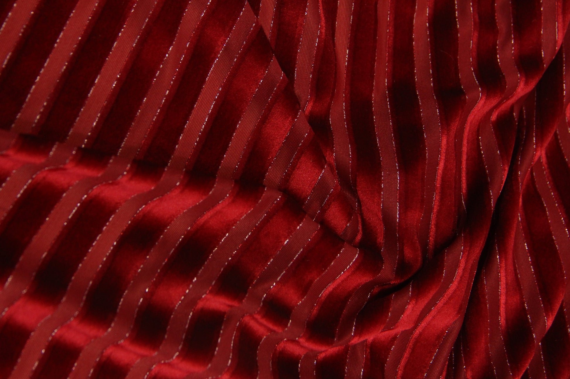 O Veludo Devorê Shine da Saliby Pacific com seu brilho sutil, leve transparência e o lurex que acompanha as listras verticais, possui uma elegância ímpar e sensualidade trazendo o luxo e a nobreza do veludo às peças.
